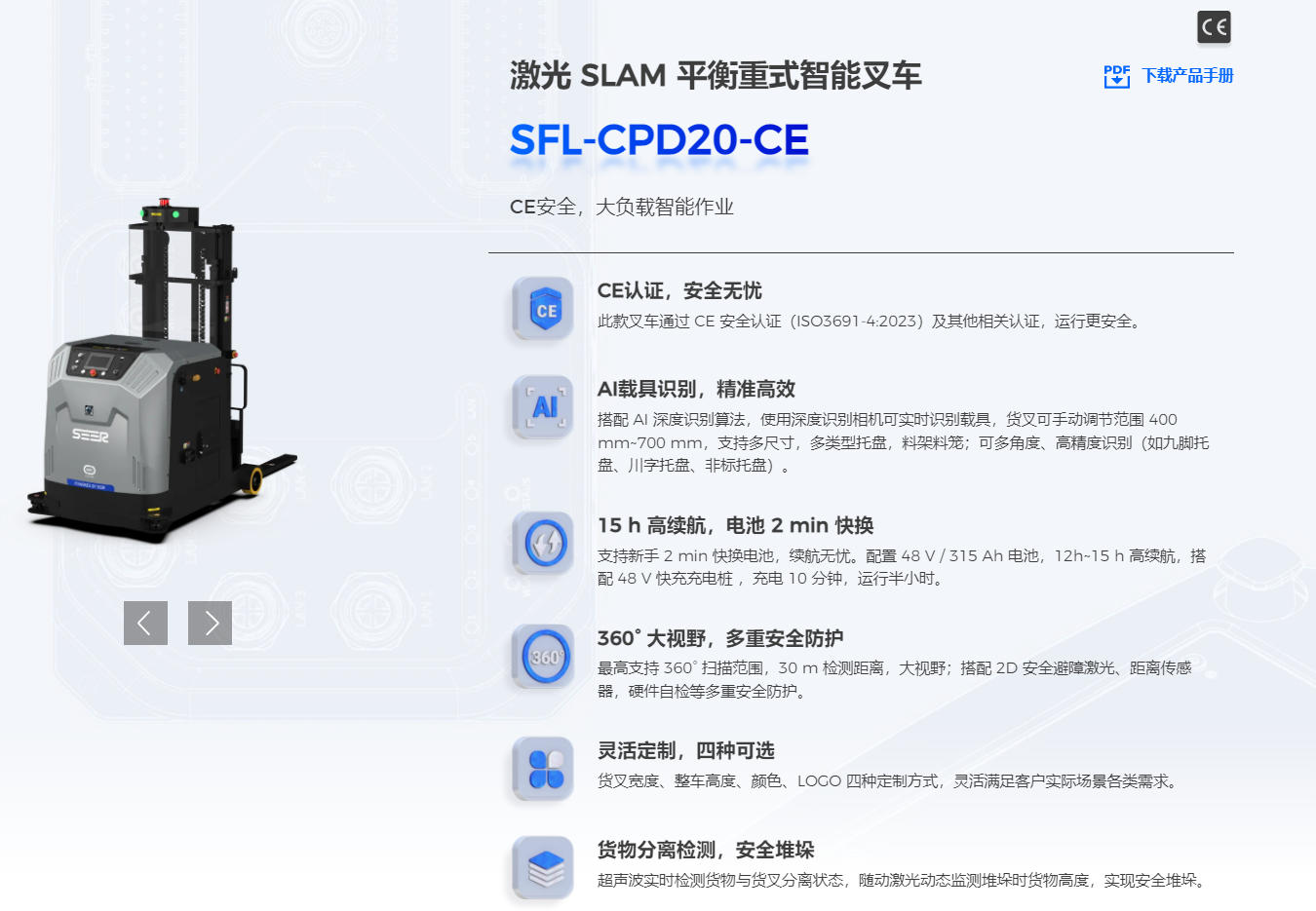 仙工激光 SLAM 平衡重式智能叉车SFL-CPD20-CE