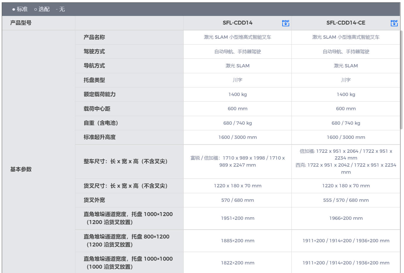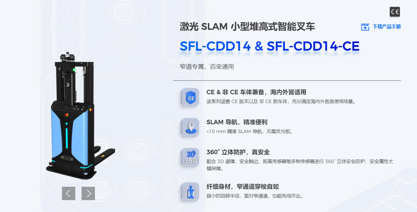 仙工激光 SLAM 小型堆高式智能叉车SFL-CDD14 和 SFL-CDD14-CE