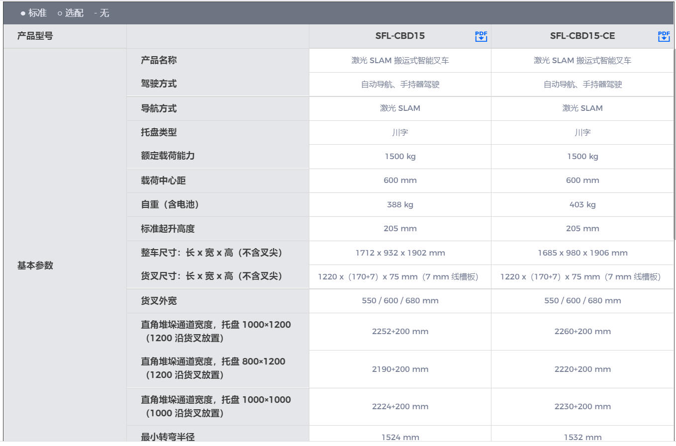 仙工激光 SLAM 搬运式智能叉车SFL-CBD15 和 SFL-CBD15-CE