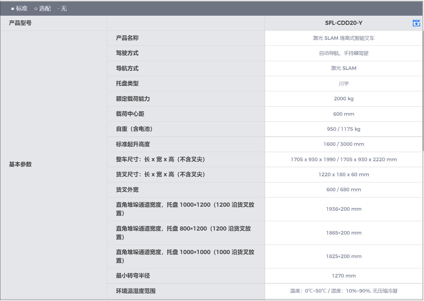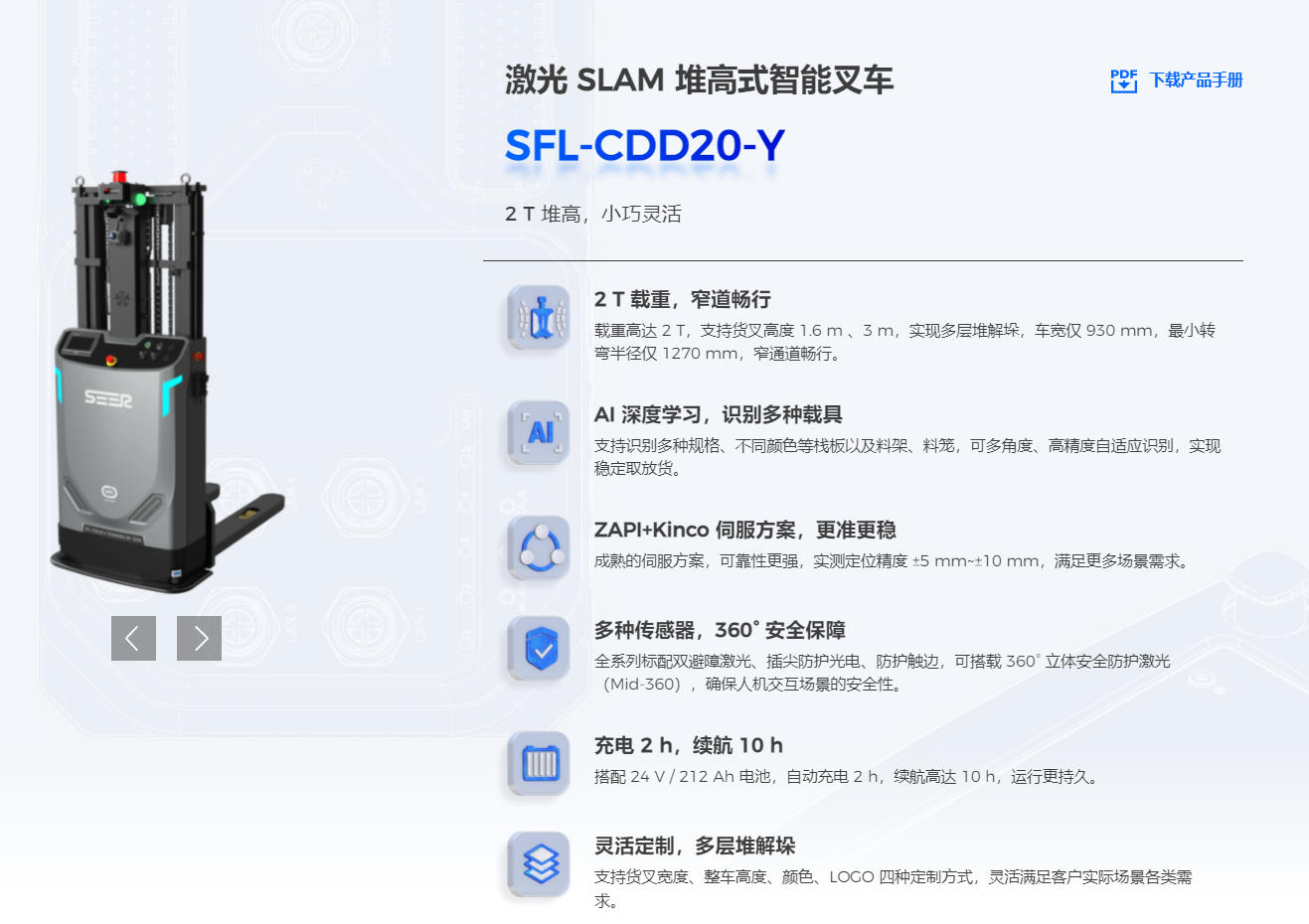 仙工激光 SLAM 堆高式智能叉车SFL-CDD20-Y