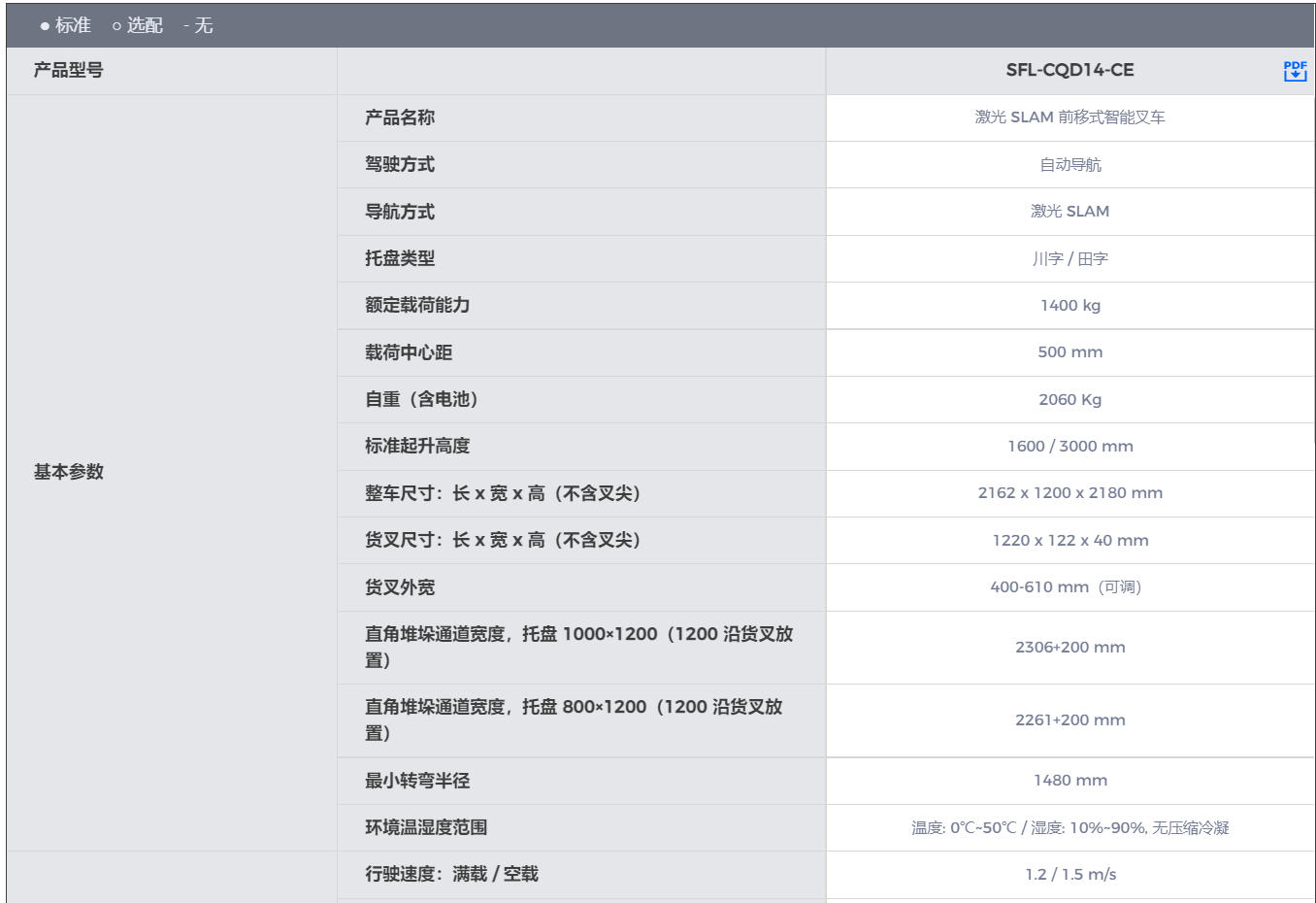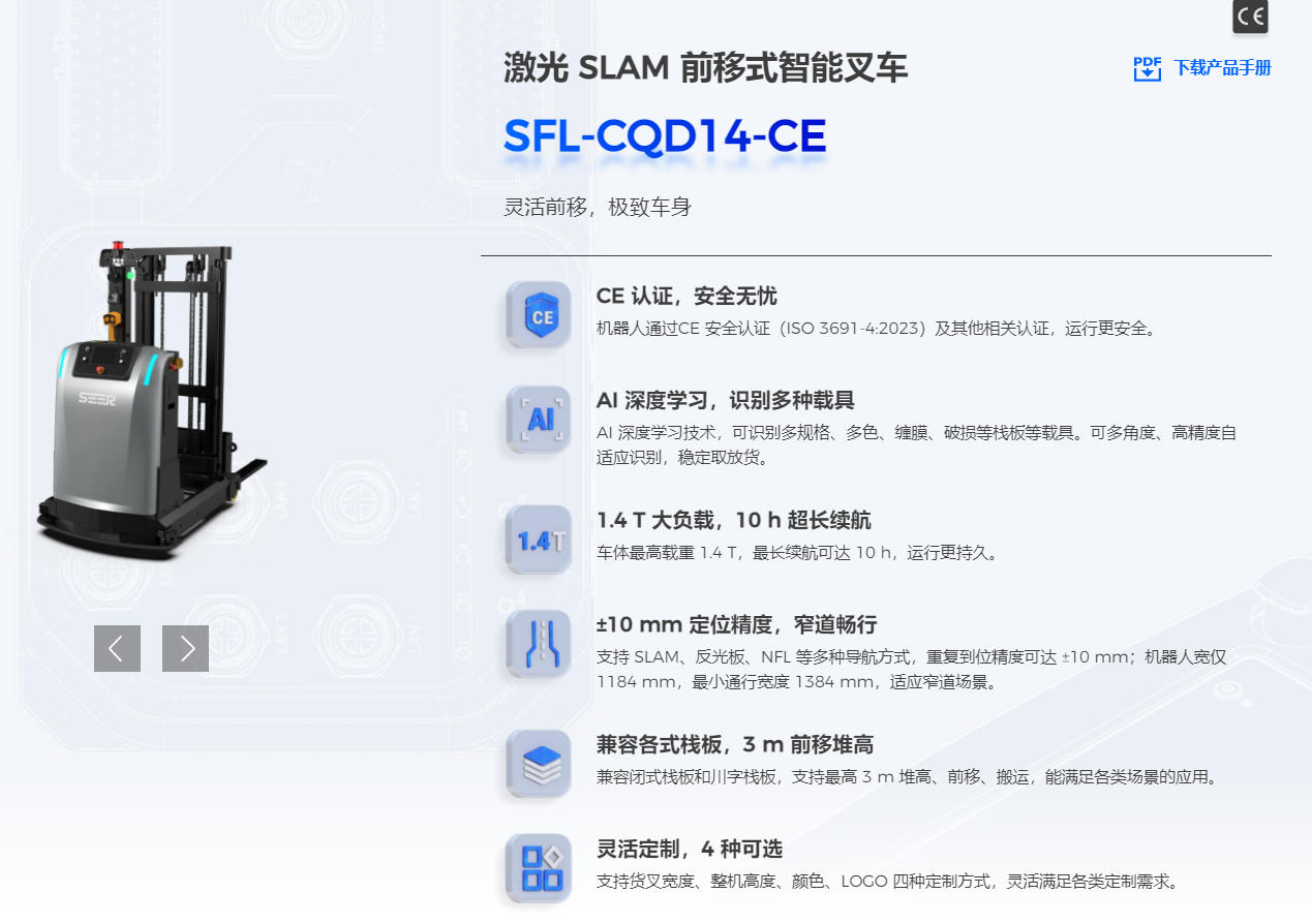 仙工激光 SLAM 前移式智能叉车SFL-CQD14-CE