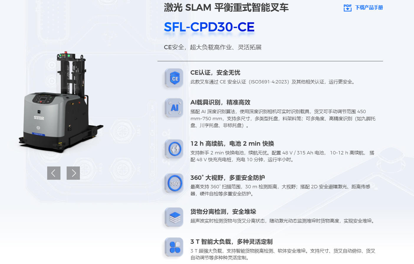 仙工激光 SLAM 平衡重式智能叉车SFL-CPD30-CE