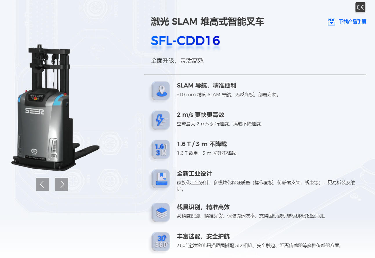 仙工激光 SLAM 堆高式智能叉车SFL-CDD16