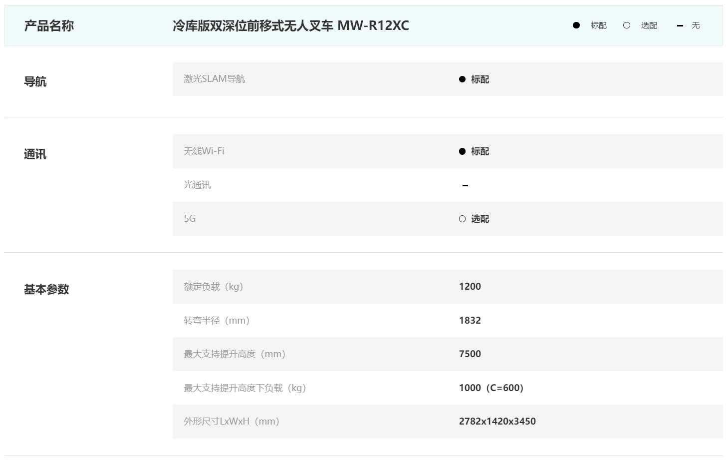 劢微冷库版双深位前移式无人叉车 MW-R12XC