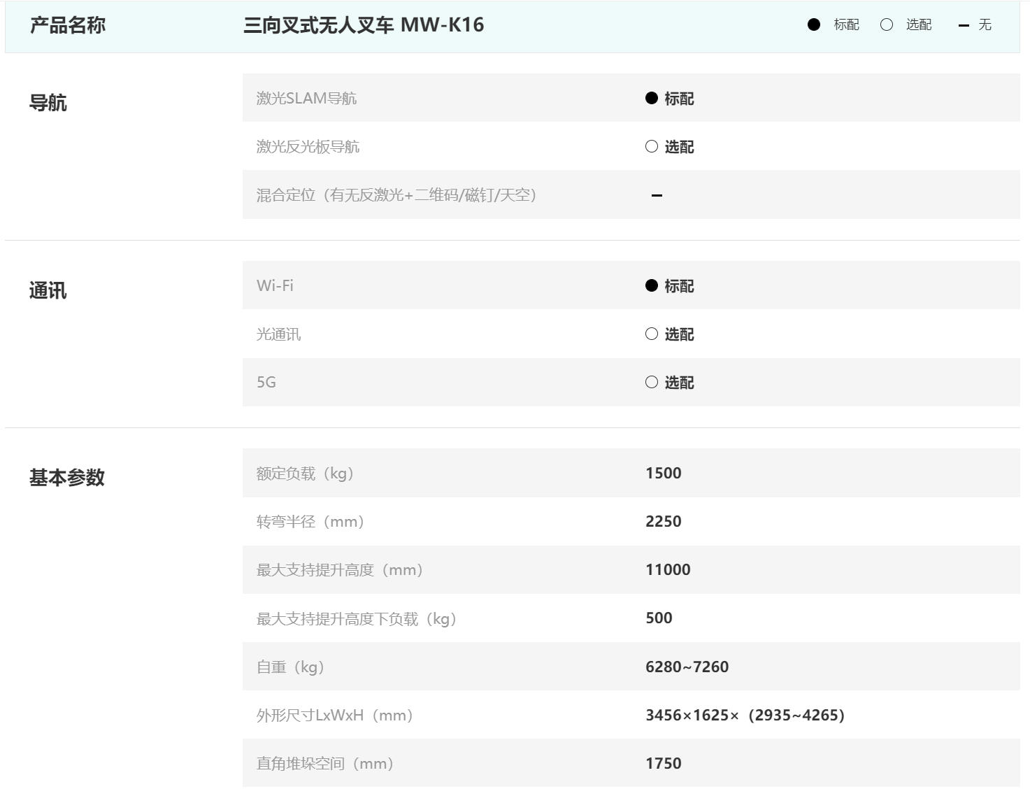 劢微三向叉式无人叉车 MW-K16